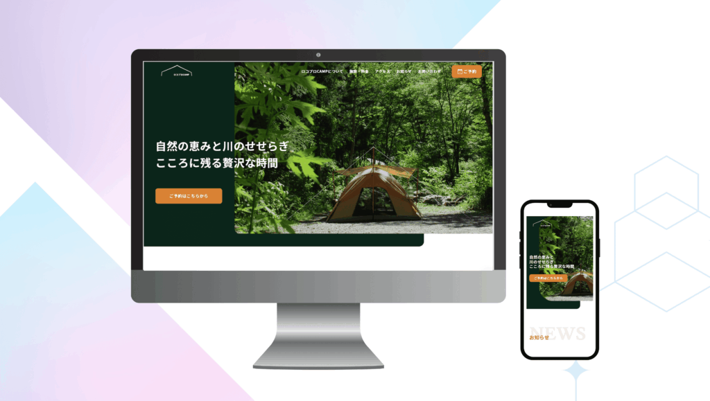 架空のキャンプサイトのホームページです。 WordPressのテーマデザインをカスタマイズして構築しています。 -